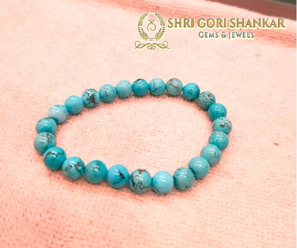 Welcome to your reliable Store to Shop Online Turquoise Bracelet (फिरोजा ब्रेसलेट) from Rohini, Pitampura, Delhi. Our certified Turquoise Bracelet is made of pure natural turquoise stones which are very soothing and protective in nature. This bracelet stabilizes the wearer's emotions, lowers stress, raises communication skills, and provides a negative energy-free aura. The polishing of every bead is done with great care to make the bracelet comfortable, long-lasting, and bright in color. Being a unisex piece of the jewelry, it is perfect for the wear of the loose or spiritual practice or to give it as a present. Find this original earthy stone accessory in India, at the best discounted price of ₹ 600, blending quality, spiritual benefits, and grace.