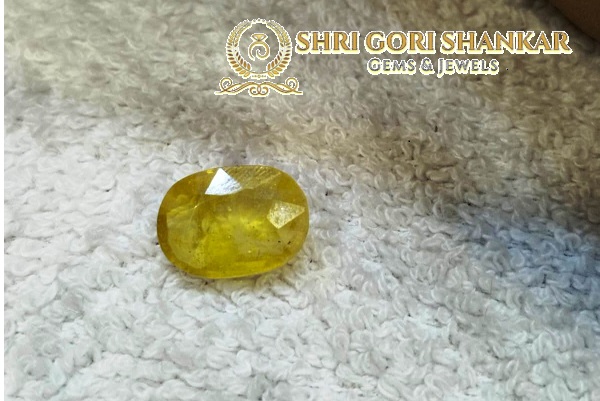 Get a 4.75 CT (5.25 Ratti) Yellow Sapphire from Shri Gori Shankar Gems & Jewels. It is a natural and certified Pukhraj stone that brings the qualities of money, success, and good vibes. An ideal one for the astrological, healing, and decorative purposes. Buy the purest and top-quality stones with the lowest price in India.